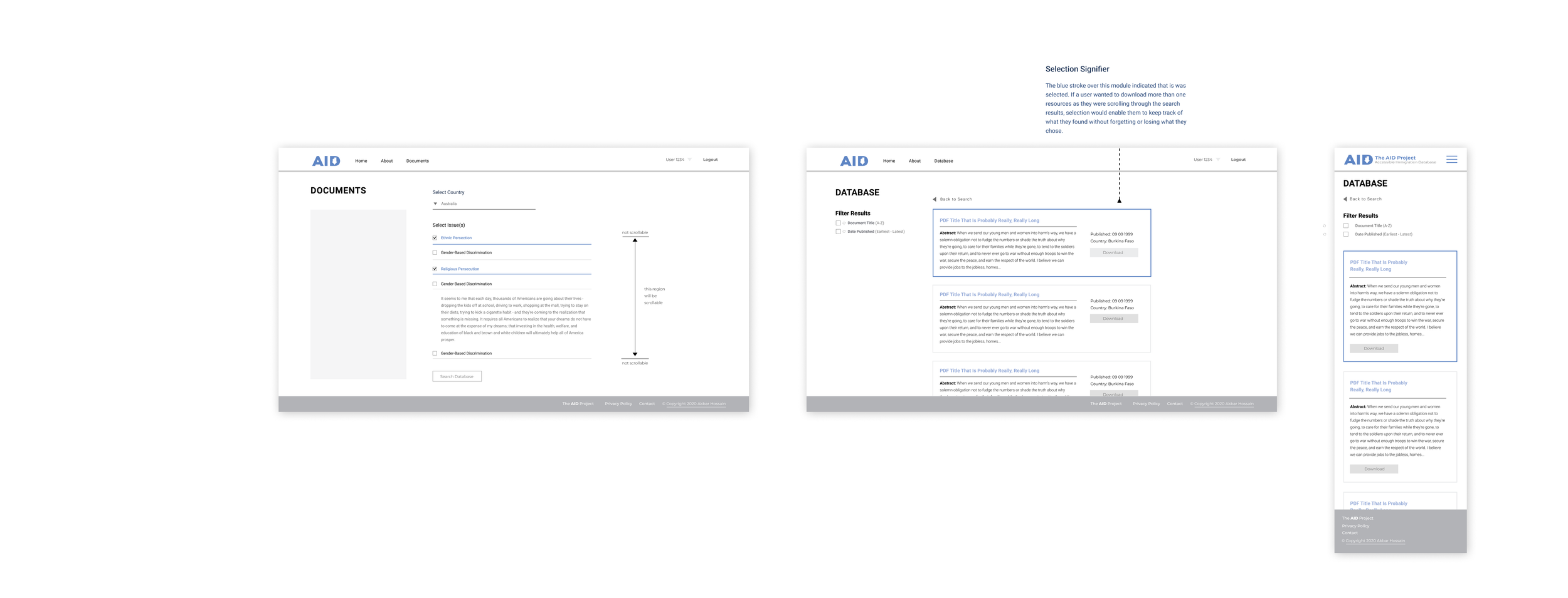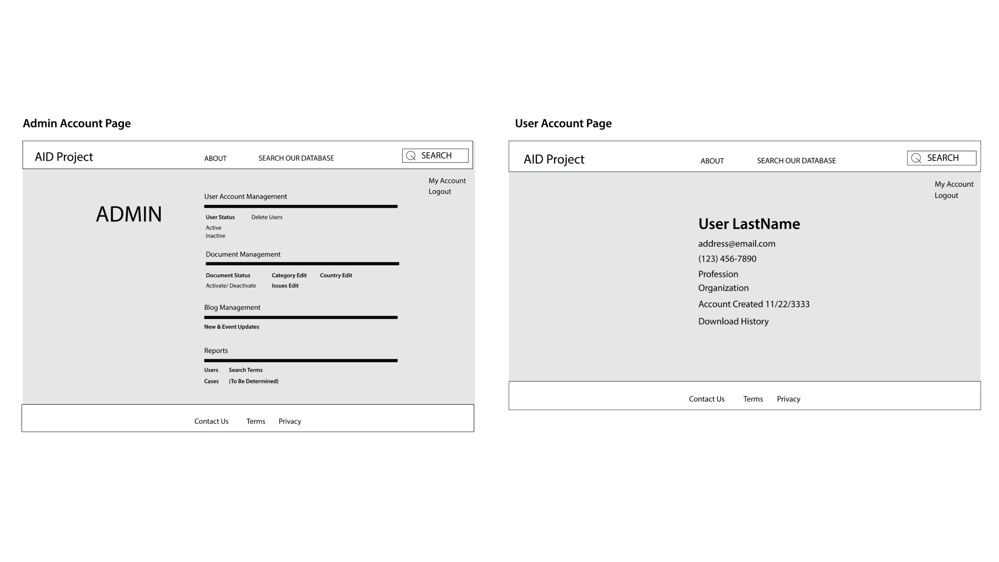 I designed all the mockups below and worked with the other designer on the team to figure out how to implement some of them in Bootstrap before the project ended. I made some HTML mockups of some layouts using Bootstrap so that the developers on the team could tie the visual elements with the C# objects and seed data that the search results would be tied to.